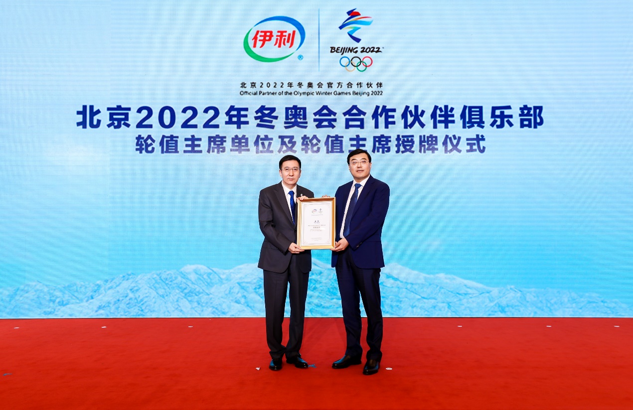 全民健身日的前一天,“营养健康70年——2019中国国际健康产业峰会”在京举行。峰会现场,北京市副市长、北京冬奥组委执行副主席张建东向伊利集团董事长潘刚授牌,伊利集团成为北京2022年冬奥会合作伙伴俱乐部轮值主席单位,潘刚正式担任北京2022年冬奥会合作伙伴俱乐部轮值主席。潘刚表示,作为行业龙头企业,伊利将继续以为人类健康事业贡献力量为己任,与世界携手,汇聚全球各方力量,推动产业合作、创新协同、价值共创,积极构建“全球健康生态圈”,实现“让世界共享健康”的梦想。