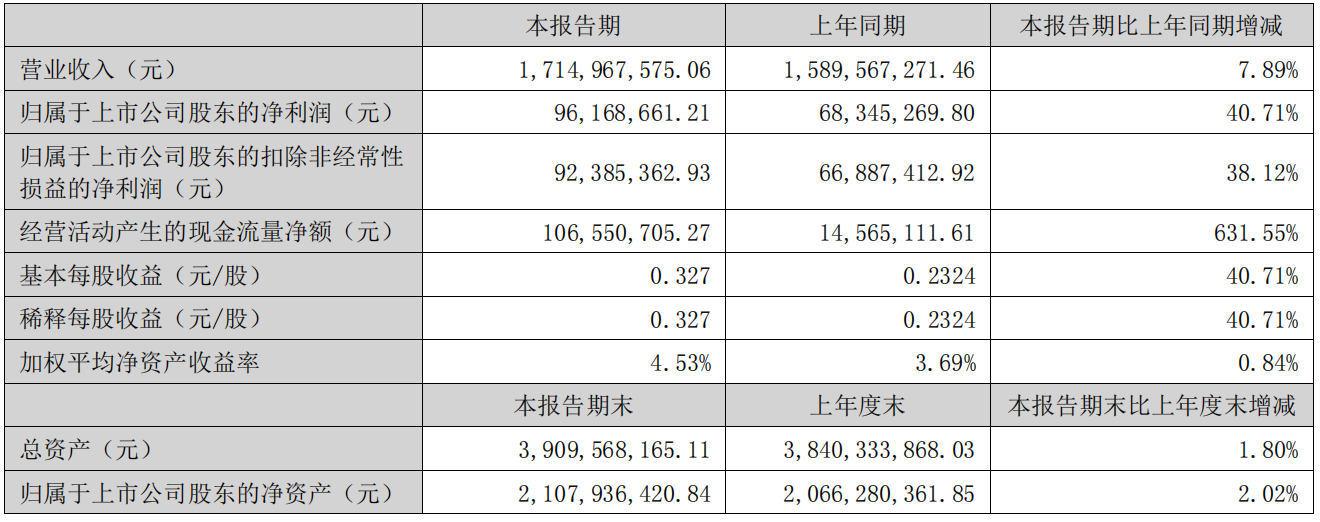 据财报显示,中宠股份2023上半年总营收为17.14亿元,同比增长7.89%;归属于上市公司股东的净利润为9616.8万元,同比增长40.71%。目前中宠股份的总资产为39.09亿元。