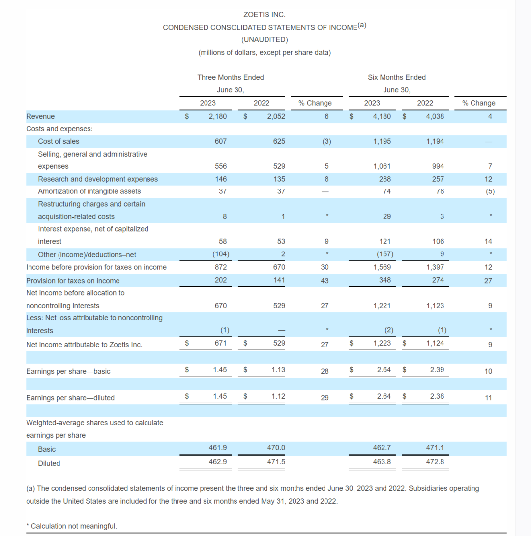 硕腾公布了2023年上半年业绩,财报显示2023年上半年硕腾总营收41.80亿美元,来自伴侣动物的营收为27.14亿美元,同比增长3%,其中犬猫产品营收为25.77亿美元。硕腾第二季度总营收为22亿美元,较2022年第二季度增长6%,净利润为6.71亿美元,第二季度伴侣动物业务收入为14.89亿美元。