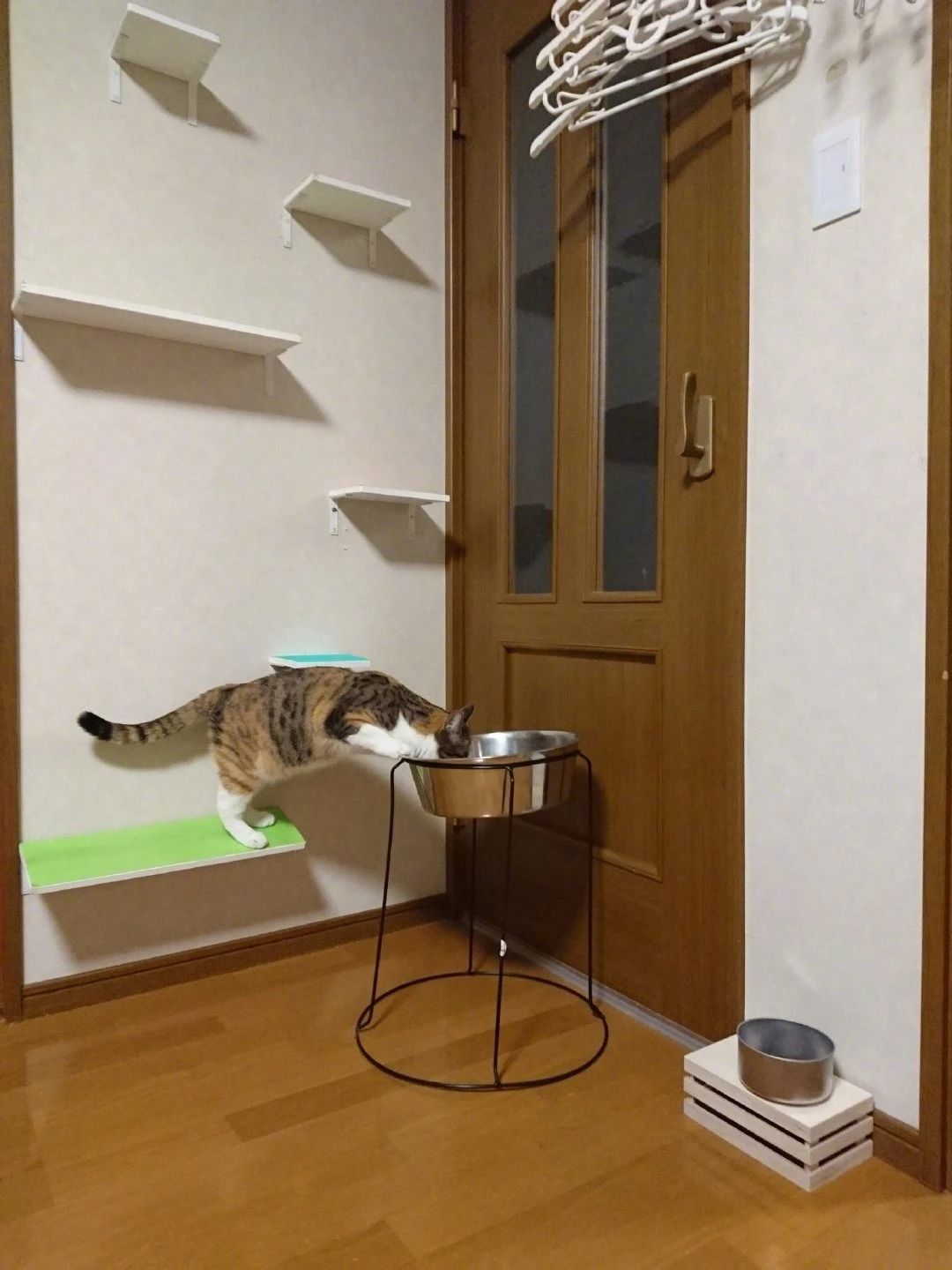 铲屎官家养了一猫一狗,因为小猫和大狗体型相差太大了,铲屎官就按身高帮它们准备了两个水碗...