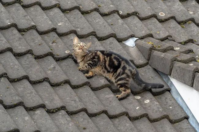 网友的猫爬上了屋顶,怎么叫它都不肯下来...