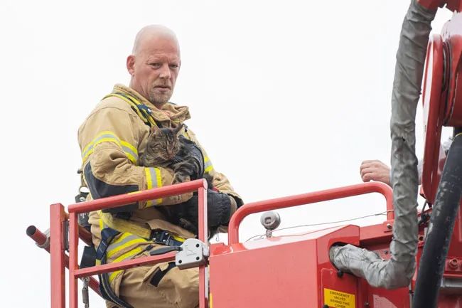 猫咪被困在屋顶下不来,铲屎官叫来消防帮助,结果猫却这样做...