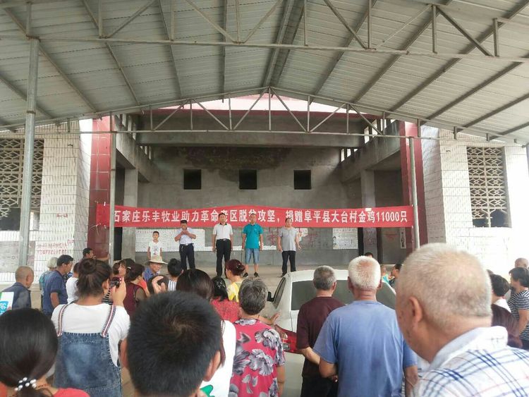 河北省发改委能源局工作组驻村第一书记兼组长蔺巨辰发表了热情洋益的讲话,十分感谢乐丰牧业赠送的11000只优质雏鸡,感谢乐丰人的慷慨解囊,给当地贫困产带来希望!随后河北省畜牧良种工作站工作组成员康振江同志,大台村村支书卢金朝及村主任吕爱花参与了此次免费有序赠送活动。