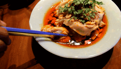 但我觉得,四川的凉拌菜味道都差不多,凉拌腐竹、红油兔丁、夫妻肺片、重庆小面,荤的素的统统红油伺候,最后一个味道。即便如鸡肉这样超脱的食材,也难免跌入滚滚红尘。有人觉得斯文扫地,也有人觉得好吃就行。