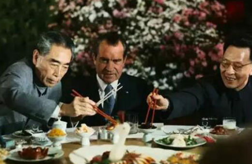 1972年,尼克松首次访华时,御厨们绞尽脑汁,做了大概是古往今来最精细的一顿宴席。而主菜,就是白切鸡。那张周总理为总统阁下夹鸡的照片,更是新中国最经典瞬间之一。但我猜,吃惯了炸鸡块或者烤鸡胸肉的老美,对于需要费劲剔、啃、撕、咬的白切鸡肯定爱不起来。