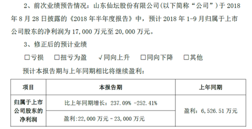 仙坛股份三季度业绩预告修正