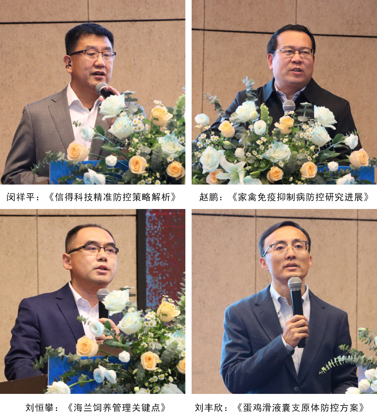 信得科技禽流感产品经理孟令旭分享了细胞源禽流感疫苗的使用案例。该疫苗通过先进工艺生产,免疫效果显著,在多个规模场实践中证明能有效预防禽流感,保障鸡群健康。