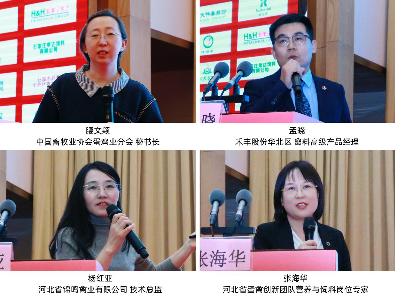 中国畜牧业协会蛋鸡业分会秘书长腰文颖解读《我国蛋鸡行业发展现状及形式展望》,明晰行业发展脉络;禾丰股份华北区禽料高级产品经理孟晓阐述《精准营养 智效降本—蛋鸡增效降本技术应用新路径》,传递降本增效核心方法;河北锦鸣禽业有限公司技术总监杨红亚讲解《新型罗曼褐和罗曼灰的养殖管理要点及优势》,分享优质品种养殖管理要点;河北省蛋禽创新团队营养与饲料岗位专家张海华教授带来《玉米、豆粕减量替代技术在蛋鸡生产中的应用》,优化饲料营养方案。
